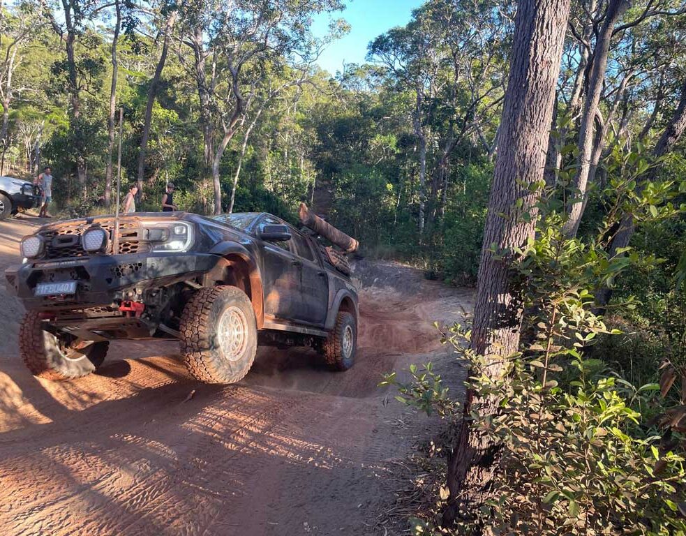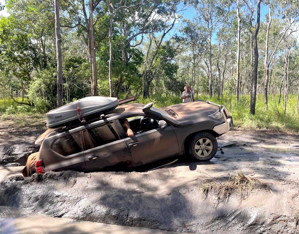 Po przekroczeniu następnej rzeki nie możemy wyjechać z błotnistego, stromego rowu. Jadę na siedzeniu pasażera w samochodzie przewodnika. Zawieszeni na przednim podwoziu. Mark pyta, czy mogę wyjść. Nie mogę. Moje drzwi blokuje ziemia. Przewodnik wyciąga liny i podaje Russellowi, który przejechał przeszkodę swoim Fordem Raptor. Już po chwili jesteśmy wolni. Mark i Russel pomagają innym samochodom przedostać się przez błotnisty próg. Z prawej strony drogi płonie busz. Mimo że znam powód, wrażenie jest ogromne i wywołuje lekki niepokój.