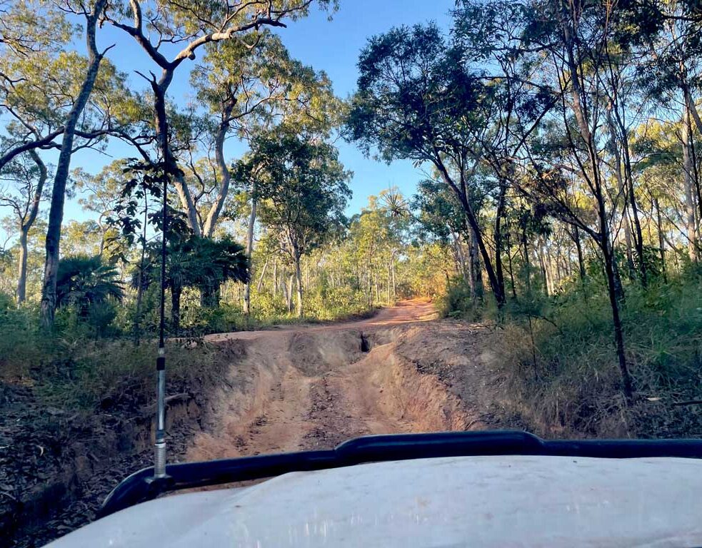 Drogę z Eliot Falls do Moreton Telegraph Station pokonujemy w zwolnionym tempie. Przez dwadzieścia pięć kilometrów jedziemy słynnym i trudnym OTT, Old Telegraph Track. Już od początku przejeżdżamy rzeki, wąskie pasaże, gdzie z obu stron, jak mur, otacza nas ziemia.