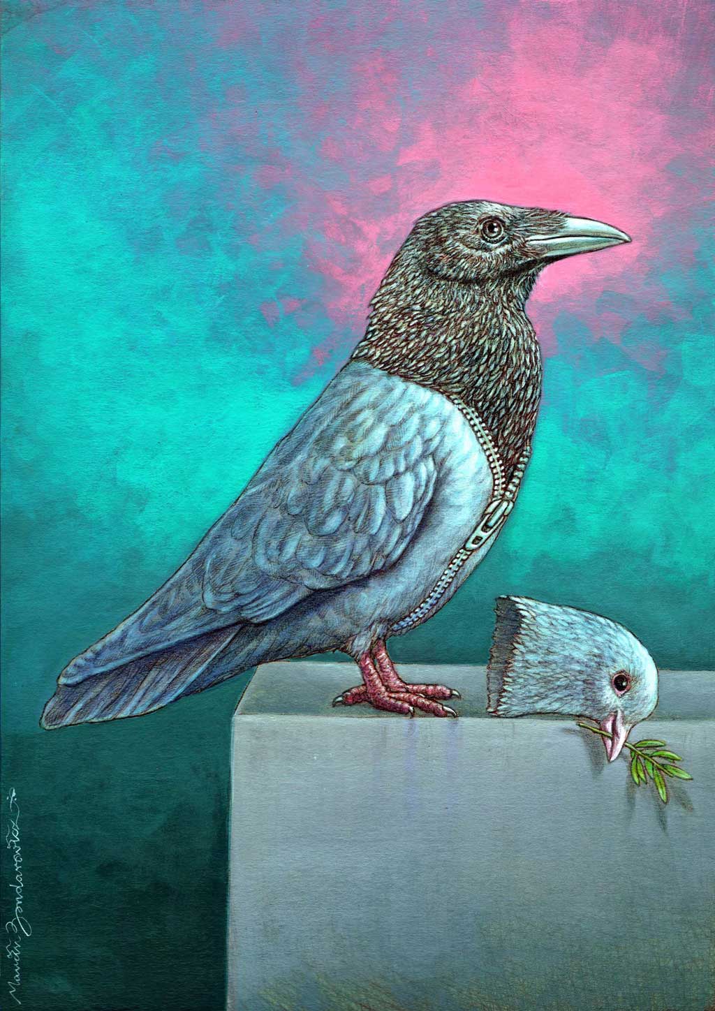 Czuję się równie bezsilny ale nie chcę być niemy wobec tej tragicznej konsekwencji zdarzeń. Prace o charakterze antywojennym stale rodzą się w mojej głowie. W ten sposób mogę wyrazić swój ból i zaniepokojenie tym co rozgrywa się na naszych oczach. Czuję, że jako zwykły człowiek mogę wykrzyczeć światu swój ból i brak zgody na obrazy, które codziennie widzę w mediach na całym świecie.