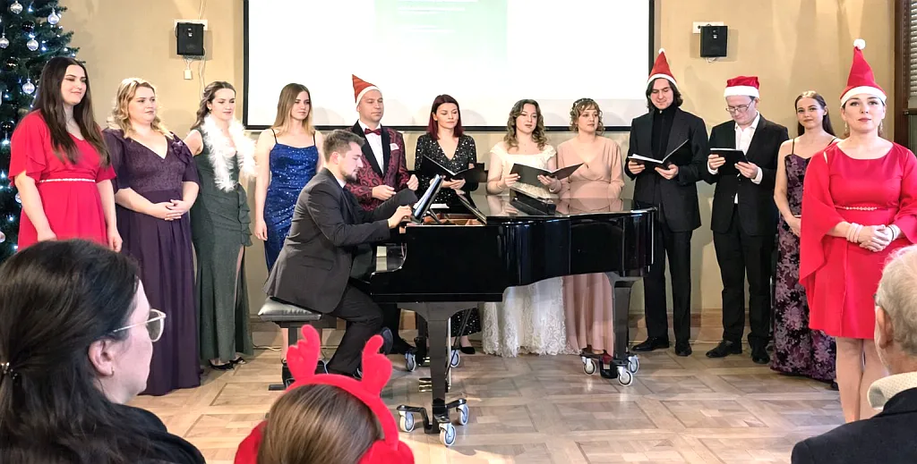 Przykładem takiej współpracy był koncert „Wokalny prezent pod choinkę”, który odbył się 21 grudnia 2025 roku. Jego koordynacją i prowadzeniem zajęła się dr hab. Ewa Filipowicz-Kosińska, prof. AS, natomiast przy fortepianie towarzyszył studentom mgr Dominik Franczuk.