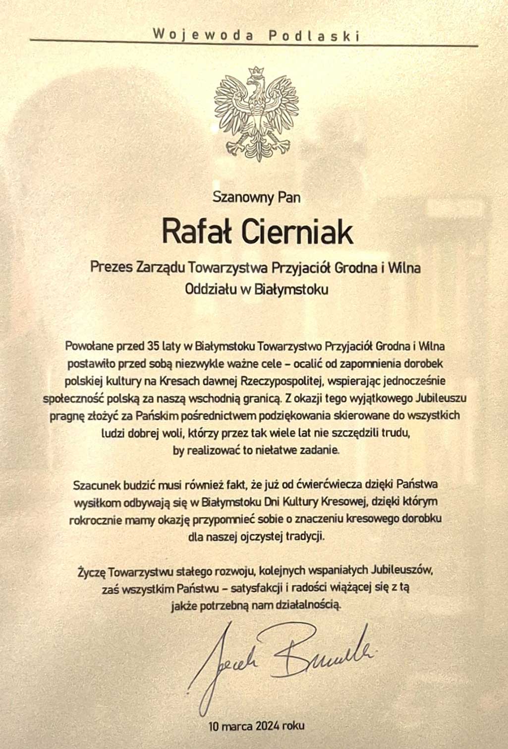 — Ówczesna prezes Klara Rogalska połączyła nas – Fundację Grodzieńszczyzna z TPGiW. I od tego czasu nasza współpraca się zaczęła. Prezesem Zarządu Krajowego TPGiW oraz prezesem oddziału białostockiego Towarzystwa zostałem w roku 2010. Mamy aktualnie kilka oddziałów w Polsce. Wszystkie zajmują się tym samym, czym zajmowały się przez minione lata. Mają dużą autonomię, chociaż działają nadal pod auspicjami Zarządu Krajowego i ponoszą pewne zobowiązania.