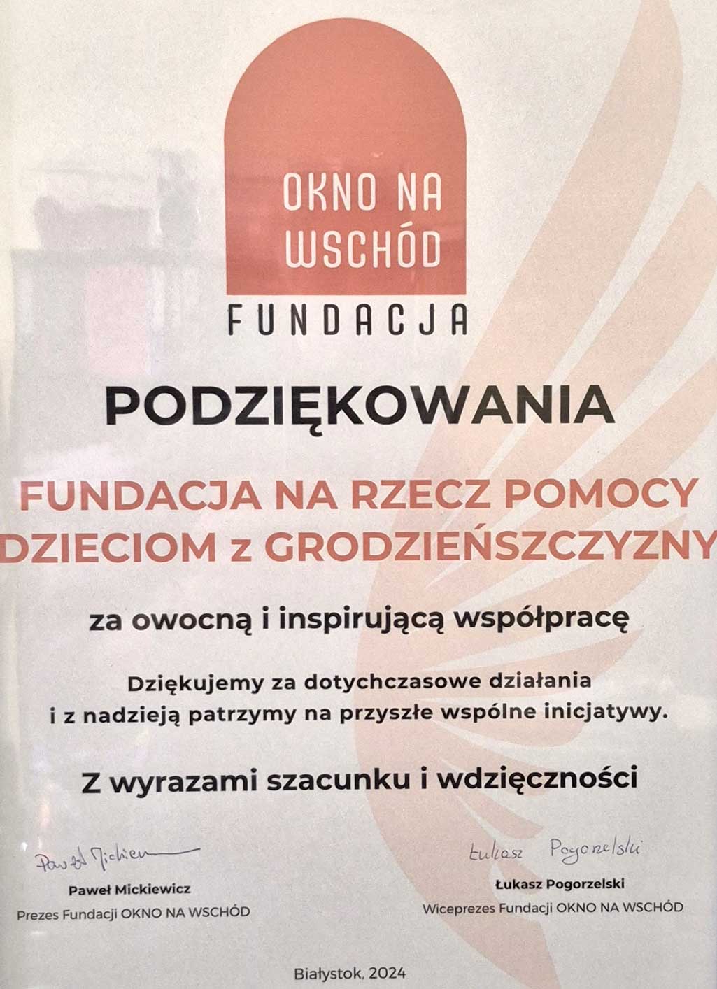 Współorganizujemy wydarzenia. Jako Fundacja Grodzieńszczyzna pomagamy TPGiW np. przy wydawaniu „Gońca Kresowego”. Po pandemii, a więc już od ponad 3 lat, nadal staramy się, aby w naszym ośrodku w Żytkiejmach organizować choć jeden dwutygodniowy turnus, na który nie mogą aktualnie przyjeżdżać dzieci bezpośrednio z Białorusi.