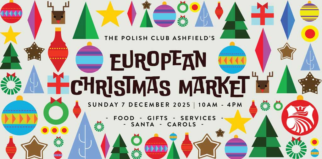 The market will be situated indoors in the Grand Salon of The Polish Club Ashfield on Sunday 7 December 2025 between 10:00am – 4:00pm.