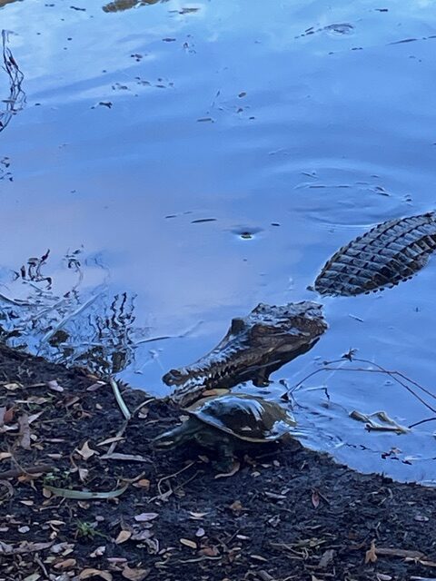 Po drodze zatrzymujemy się w Musgrove Roadhouse. Oglądamy krokodyle i żółwie w pobliskim stawie. Na szczęście staw jest ogrodzony, a krokodyle słodkowodne, choć jest wśród nich jeden większy, z wód słonych, ale nie zawsze się pokazuje.