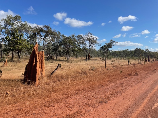 Ależ musi być im ciężko dźwigać tyle kurzu. Zwłaszcza że w tym czasie deszcz ich nie umyje. Tu na przylądku Cape York są tylko dwie pory roku: deszczowa latem, od listopada do kwietnia i sucha zimą, od maja do października. Temperatura w dzień 31-32, nocą 23-24 stopni. Wyobrażam sobie jak gorąco bywa tu latem.